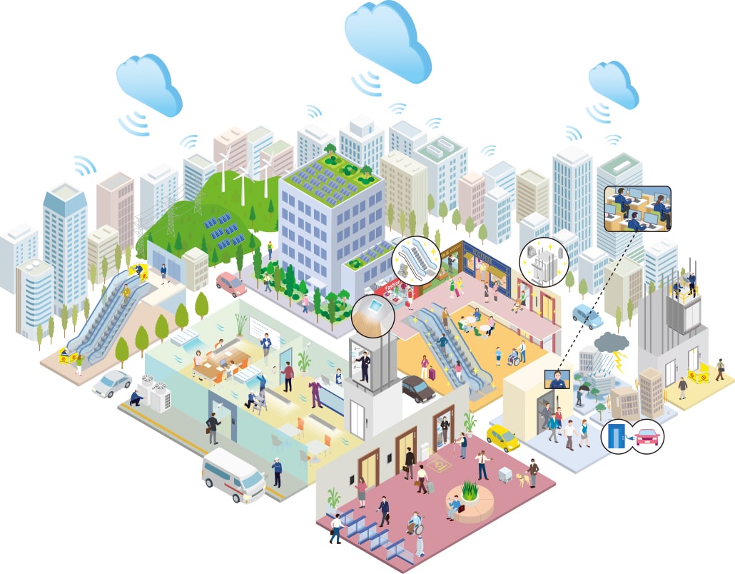 Through these efforts, we’re doing our part to actualize smart buildings*1 and smart cities*2 while addressing the social challenges that matter to us, such as safety and security, carbon neutrality, labor savings and efficiency improvement, and everyone’s well-being.