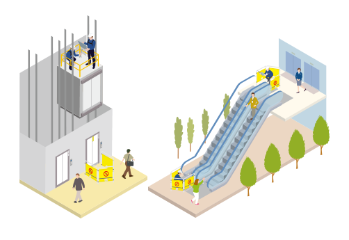 Many people use elevators and escalators every day, so we strive to ensure their safety around the clock through remote monitoring via IoT. Both, regular inspection and maintenance services by professional technicians as well as the use of data acquired from remote monitoring supports maximum building safety. Through our consistent, high-precision services, we're contributing to creating safe and secure cities.