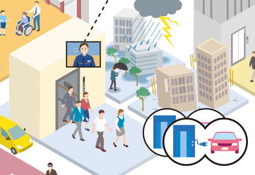 Mitsubishi elevators incorporate numerous features to protect elevator passengers at all times, even during an earthquake, power failure, fire, or other emergency. These features include confinement prevention, automatic diagnosis for resuming operations after an earthquake, power supply from electric vehicles, and much more. By swiftly restoring operations in any emergency, we’re helping ensure the safety and security of buildings.