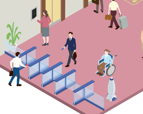 We understand the needs for comprehensive building security, and strengthening management of confidential information. Our solutions include various authentication, traffic control, and occupancy management systems and systems for linking these features with elevators and disaster prevention facilities. By finding the best way to operate and manage each building, we ensure safety and security to offer peace of mind.
