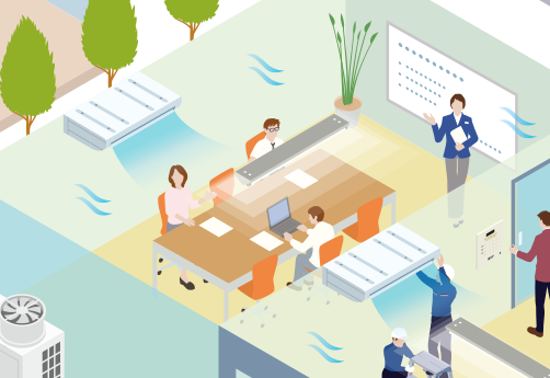 Everyone expects a building to be comfortable. We meet this need and support safety, security, and comfort in buildings through our skilled technicians who provide onsite inspections of a range of building facilities such as air conditioners, refrigeration equipment, and building management systems. Our remote management 24/7, 365 days a year also helps make such building environments possible.