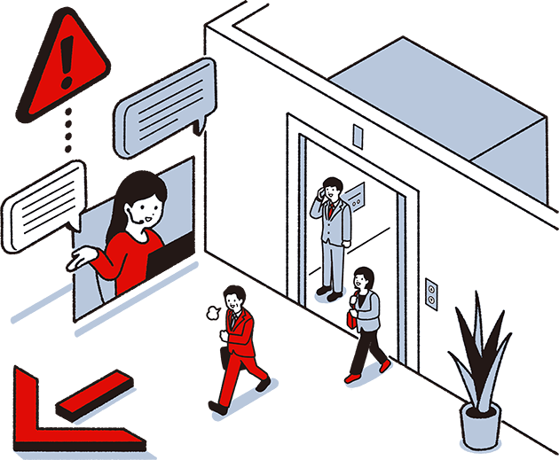 Whether in ordinary circumstances or times of emergency, buildings of the future will keep people moving. If an abnormality is detected, the elevator will immediately stop at the nearest floor, where signs and audio guides will direct passengers to a safe evacuation route. Just like a heart that continuously pumps blood throughout the body, such systems will continue to protect lives and safety 24 hours a day, 365 days a year.