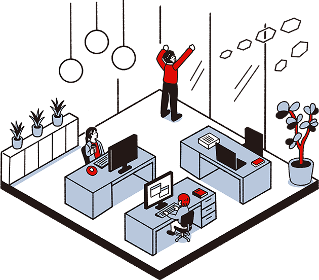 Lights are reminiscent of a clear sky. A gentle breeze makes you feel like you’re in a forest. Elevators and meeting rooms almost make you forget that you’re indoors. People gather naturally. Conversations begin. Your mind is at ease, and your concentration improved. Buildings of the future will be oases for each person.