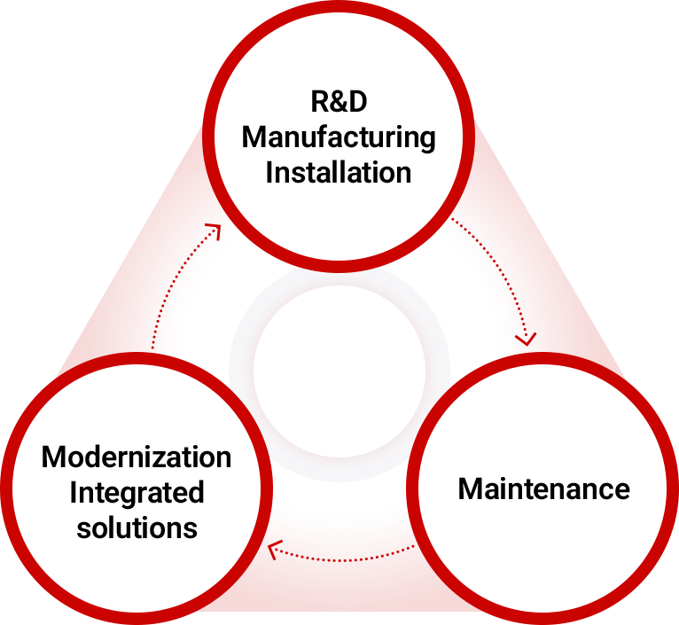 From the development of elevators, escalators and other building equipment to maintenance and modernization, our integrated business operations enable us to constantly innovate in technology and quality and respond quickly to customer needs.
